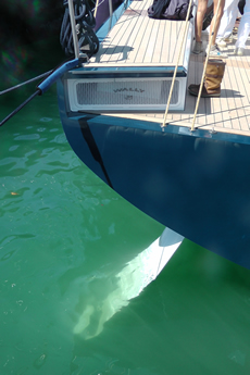 Compared to Hamilton, Magic Carpet’s hull shape is ‘softer’ with a moderate chine that extend around 30% forward from her stern. Her transom profile follows almost a perfect curve, whereas Hamilton’s chines are more pronounced, her hull shape more powerful.