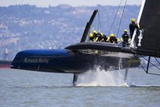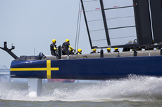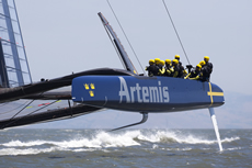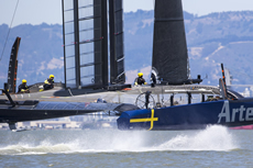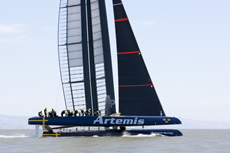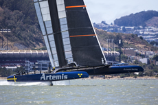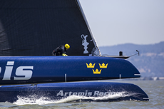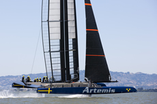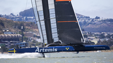 Following the launch of 'Big Blue', Artemis Racing's second AC 72 catamaran has made its debut out on San Francisco Bay. Despite this being the first outing for the Swedish challenger’s giant catamaran, the team successfully managed to get their AC72 up on its foils in 15 knot winds.