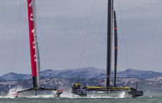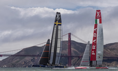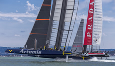 Defying the odds Artemis Racing led into the first reaching mark but on the first run the inexperience of the team started to show through the crew taking much longer to get through the gybes and failing to sail as deep compared to the slick Italian team. Less than a minute into the run and Luna Rossa had pulled effortlessly into the lead. The Italians opened up a 30-second lead at the leeward gate. Artemis Racing fought back on the next upwind leg, a favourable shift allowing her to reduce her deficit to 9 seconds at the third mark rounding. But Luna Rossa remained significantly faster on all three downwind legs - on the second downwind leg the Italian AC72 was an average of 4 knots faster. Much of that came from the Italians pulling off foil-born gybes where they didn’t touch the water.