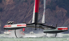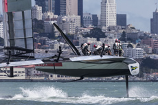 Despite the result Artemis Racing skipper Iain Percy was pleased with how the first day had gone: “We’re really, really pumped in Artemis Racing and super proud. To think that one week after launching we’d be sailing around the race course in 20 knots is beyond my wildest imagination. All the team support boats came over after the race and were cheering and clapping.