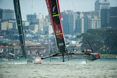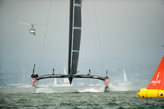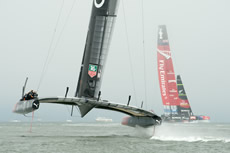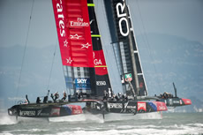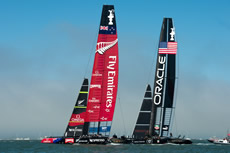 Up the beat this situation would normally have played into the hands of the Kiwis, however on this occasion they were unable to get a piece of Oracle Team USA and made it around the top mark 16 seconds behind. For the first time there was a split at the top mark with Oracle Team USA rounding the port mark and the Kiwis rounding the familiar starboard one. On this leg the tables were again turned with the Kiwis seemingly faster, closing in on Oracle Team to reach the leeward gate just five seconds behind to finish eight seconds apart.