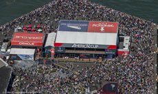 The breeze was at the upper limit of the permitted range from the WSW at 19 knots and for the first time in this America's Cup with an 1.3 knot ebb tide (ie wind against) rather than the usual flood. This affected the start - with more of a pin end bias to the line - shortened the beat and also widen the breadth of the course with no favourable tidal lee behind Alcatraz to play.
