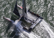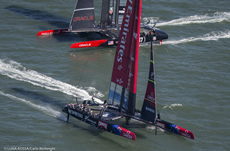 But the day will be remembered for Emirates Team New Zealand coming within a whisker of being on the banana boat home, as during a sudden tack that didn't quite go according to plan, its AC72 came literally within a whisker of capsizing. One can just imagine how things might have been different if there had been two knots more wind and the catamaran had not returned from the brink. Thankfully, finally, after a ponderous moment, its weather hull finally crashed back down in the water - much to the relief of the sailing team, but also the Emirates Team New Zealand shore crew, the New Zealand government who partially back the campaign and the team's legion of followers around the world.