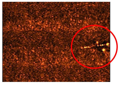 With confidence building, we hired the expert in sonar scanning with his team, dive boat and tow fish sonar scanner. After four hours of detailed scanning of the seabed around our GPS position, they reviewed the sonar trace and found a likely target. It didn’t look like the foil but it had one straight edge and some other bright reflections. There is a sonar man’s rule of thumb that anything with a straight edge is man-made and so this object looked very promising. He transferred the object’s GPS position to the navigation computer and found the target to be within twenty metres of our GPS position. It looked as if we were in luck.