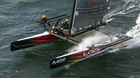 At present the M-32 appears to be in competition with the Martin Fischer-designed GC32, however the two boats are vastly different and the latter boat will this year be sailing on foils (in fact it went foiling with its prototype set of foils in the south of France only yesterday...more here)