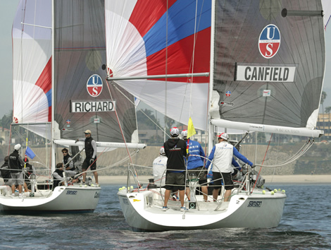 Williams' lead would be a bit larger if Canfield, ranked No. 1 in the world, hadn't done to him precisely what Bruni did 24 hours earlier: stalking his stern and, using his right-of-way position, to force him behind the committee boat right up to the starting horn, requiring Williams (No. 2) to do a downwind turnaround as Canfield sailed away into the end of the lazy, hazy day.