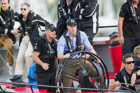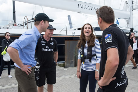 As part of their Royal Highnesses the Duke and Duchess of Cambridge's tour of New Zealand, the royal couple today visited Emirates Team New Zealand base in Auckland's Viaduct Basin, and then had the opportunity to go racing with key members of the team in two ACC monohulls.