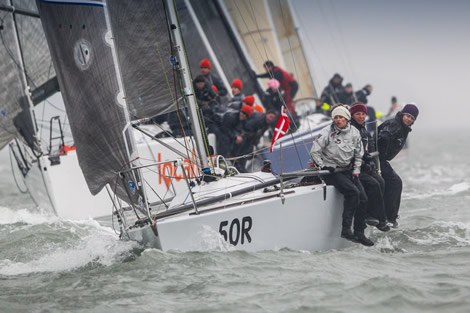 Blistering sunshine, great visibility and a stiff, consistent breeze - sadly none of this featured on the final day of racing at the RORC Easter Challenge. As a slow moving front passed overhead, the Solent received a relentless deluge with the visibility dropping off enough to make it hard to see the weather mark. Conditions then deteriorated further with the deluge becoming a torrent, many crews turning on their yachts' navigation lights, despite it being lunchtime. Nonetheless, the wind held during the day allowing PRO Stuart Childerley and the RORC race management team to lay on four races in the central/eastern Solent.