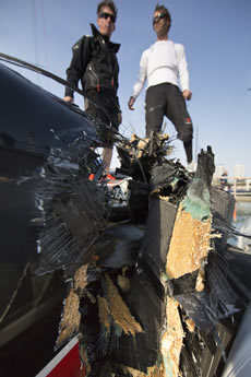 Larson explained the incident: “We were lining up at the start, and approaching the line with ten seconds to go and most of the fleet was on port. Red Bull ducked behind us, the winds were shifty and up and down, there was too much of a puff and they couldn’t get the bear away and T-boned us – it happens. It’s great to have won, we had such a great regatta that it was bittersweet to end that way, but I think we earned it so it feels good. We’re just glad that no one was hurt and that the boat is repairable – it will take a week in a good boat yard, but it will be back and ready to race.”
