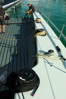 However it is still possible to hook in all the pedestals for hoists, although, for example, the aft pedestal is primarily for operating the hydraulic rotary pump for the backstays. “There is a bit of a combination of how you come into the bottom mark - these guys have got to do a bit of hydro work and then they’ll help the string drop and then they finish off the hydro, get the main sheet in and get the runners up, so they’re quite busy.”