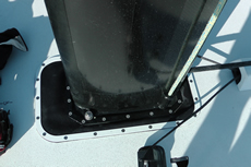Most noticeable about the foredeck is that it has a chamfered deck to hull join, a la VO65 and modern day IMOCA 60s. This offers a lighter solution to the conventional rounded gunnel as one side of a triangle is obviously lighter than two and typically even with female tooling and master builders like Persico involved, creating a radiused edge requires use of filler. Aft of the shrouds there is a conventional radiused gunnel as here the crew will be hiking and it is necessary to keep their weight as far outboard as possible.