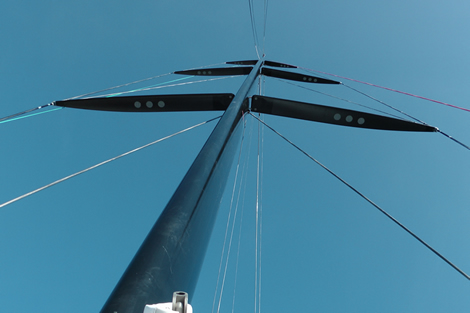 The runners are carbon EC6 but covered in a new ‘speed film’ which Southern Spars has developed that is thinner, lighter and lower windage than conventional braid.
