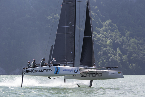 Given that the AC62s can’t be launched until ‘150 days prior to the first scheduled race of the America’s Cup Qualifier’, ie mid-2016 presumably, this means there is now a two year window for sailing teams to train. Under the new Protocol ‘surrogate yachts’ are deemed to be multihulls above 33ft LOA with the exception of the AC45, it seems likely that teams – as Luna Rossa has demonstrated - will be using AC45s for their R&D (they are after all closer in size to the AC62s) and will be using the America’s Cup World Series events in 2015 (when they kick off) and 2016 to get race ready. However there are other alternatives, in particular the GC32s, which Luna Rossa and Oracle Team USA’s Tom Slingsby raced in Trauseewoche in May and which Team Austria – including Big Fella (CEO Iain Murray) himself – have been trialling recently on Lake Garda.