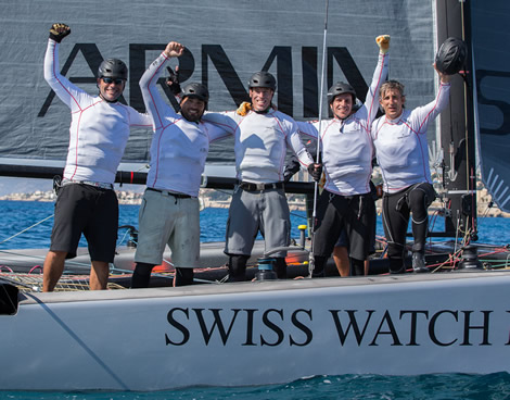 The seven straight race wins of Sebastien Rogues’ GDF Suez team finally came to an end when Armin Strom Sailing Team won yesterday’s last race. Today Flavio Marazzi’s crew picked up where it left off, scoring three consecutive race wins, enabling the Swiss crew ultimately to claim the regatta by eight points.