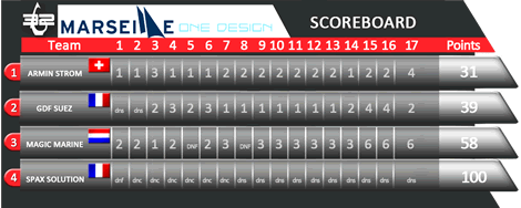 A light forecast didn’t look promising for the fourth and final day’s racing on Marseille’s Roucas Blanc, but the breeze filled in and built to around 15 knots at lunch time and the race committee was able to squeeze in four races before the final cut off of 15:00 local time.