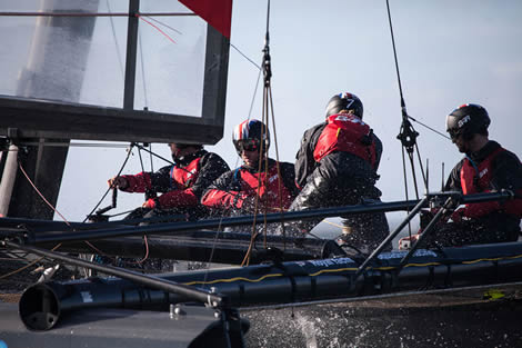 With its existing AC45 now being used as a test platform, BAR has ordered a new AC45 which it will race on the America’s Cup World Series in 2015. Putting all the AC45s on foils for the ACWS is no small task and it appears that it is going to be tight to get them all up and running prior to the first ACWS event – that has yet to be announced formally – but which is expected to be Cagliari, Sardinia in June. “Our boat will come through the UK first and then we’ll have a small window to check that the mods have bedded in. Then we all go to the venue and we have a training window there,” says Ainslie.