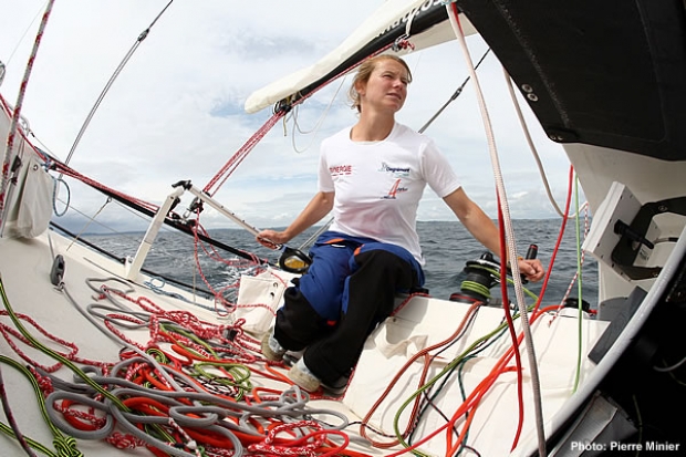 Over the years the Mini Transat has had no real shortage of female competitors. From the UK Ellen Macarthur cut her solo offshore racing teeth in the event back in 1997 when she finished 17th and was followed two races later after by Sam Davies (11th). The best result by a female competitor was from a young Isabelle Autissier, who finished third in the 1987 race (just behind Laurent Bourgnon) before moving swiftly on to a lengthy career in the Open 60 class. Over 15 previous runnings of this classic biennial offshore race for aspirant singlehanders, it has never been won by a woman. However on Sunday’s start line of the 2007 Transat 6,50 Charente Maritime Bahia (to give the event its proper title), will be the most promising contender to date.
