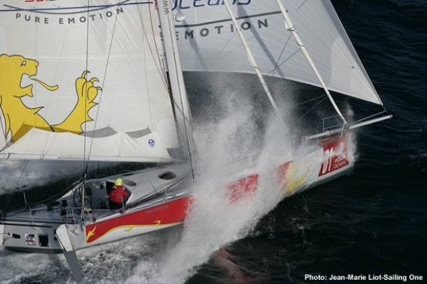 "They have changed a bit the set-up of the rig, keel and the bulb, so that it doesn’t pound upwind, which is quite surprising," says Richomme. "It goes 11 knots upwind in breeze and it doesn’t slam as much as an Open 60. We are quite happy about that. And as we have a long bowsprit the sails really lift the boat up downwind."