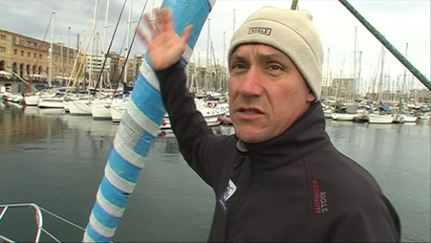 In this clip Luc describes the foredeck arrangement, the furlers (including the one that sheared in two) and the sails.