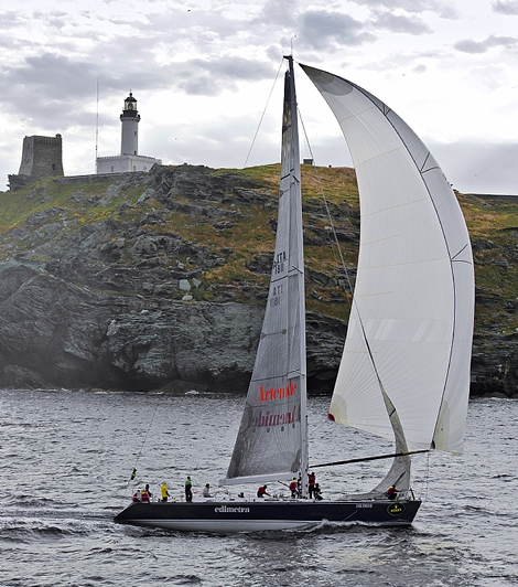 Neville Crichton, former owner of Esimit Europa 2, came in second at 12h15m19s CEST with Shockwave. The mini-maxi rounded the Giraglia Rock three hours behind Esimit Europa 2.