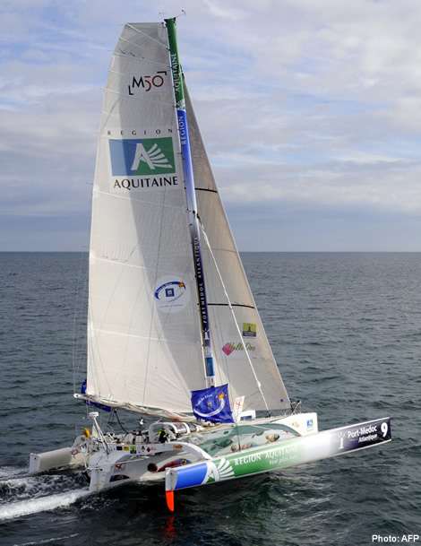 Lalou Roucayrol's Multi50 trimaran Région Aquitaine - Port-Médoc has capsized while on a delivery back from the finish of the Route du Rhum. At the time the boat was probably in the worst position, around 1,000 miles from Bermuda, the Azores and the Caribbean.