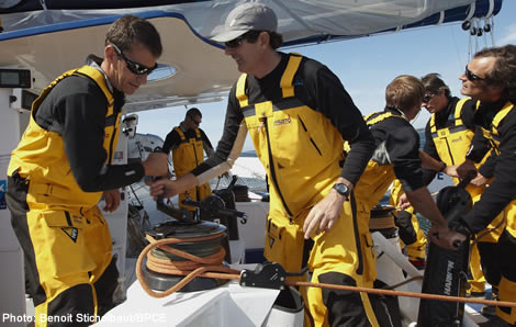 At present the crew are once again playing the waiting game for the optimum weather window to materialise, something that is becoming increasingly necessary as the top sailing records – this and the transatlantic – become ever harder to break. Pascal Bidegorry and his crew were on stand-by throughout last winter waiting for a weather window that never arrived, but which allowed Franck Cammas and Groupama 3 team a last gasp of glory with their smaller 105ft long trimaran.