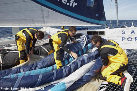 Impressive about Banque Populaire is not only her scale and her incredible performance. Pascal Bidegorry’s team have approached every aspect of their cutting edge race boat, which genuinely rests at the very edge of what present technology allows, with the meticulous attention to detail of a Cup campaign.