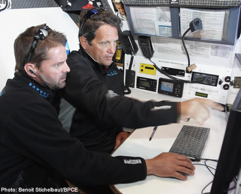On board Thompson’s role is as a helmsman/trimmer. Pascal Bidegorry runs a three watch system with Yvan Ravussin (brother of former ORMA 60 skipper Steve), Solitaire du Figaro winner and IMOCA 60 skipper Jeremie Beyou and another ex-ORMA skipper, Fred le Peutrec as watch leaders. For le Peutrec, who once upon a time sailed with Grant Dalton on Club Med during The Race, this will be his second non-stop lap of the planet in the last 12 months, for he was on board Groupama 3 for their record. Thompson is on Ravussin’s watch along with Thierry Chabagny who usually skippers the Figaro Suzuki Automobile.