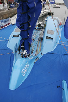 “On Virbac the idea was to try and make a boat where you not only looked at the righting moment of the boat, but at the longitudinal righting moment too. The idea was to try and use less water [ballast] and to raise the longitudinal righting moment, while fitting the rule in transverse. So we have boats that have lots of buoyancy in the bow and that raises the longitudinal stability of the boat.”
