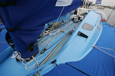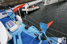 During the last Vendée Globe, several boats experienced problems with their twin kick-up rudders, however the VPLP-Verdier designs were not among them and Verdier says that they have retained the same safety factor in their engineering for their new trio, although we understand the safety factor in the steering system itself has been raised. Again Foncia is the exception where Desjoyeaux used some existing tooling that he had. However Verdier says where there has been change is in the rudder lifting/kick-up mechanism that now allows the blades to be swapped out in the event of one being damaged.