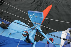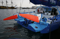 One of the reasons Desjoyeaux is believed to have gone for the straight boards is that with the Foncia’s tight build time he had existing moulds for the straight daggerboards already. However Verdier says that the curved boards have another feature. “With the curved daggerboard you have more dampening when you go through waves. We believe it acts as a spring damper. And you don’t have the same lift distribution along the length of the daggerboard.”