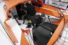 PRB’s boat captain Eric Carret points out that the sole aim of their boat is the Vendee Globe. “The idea is to have a boat for one man, so a smaller cockpit and you can do everything from the cockpit and you have the cabintop fixed and you can stay there and steer easily. That is the difference between this and the old one – the old one had a very large cockpit and was good for crewed racing but was too large for one man, so we decided to have a small one.”