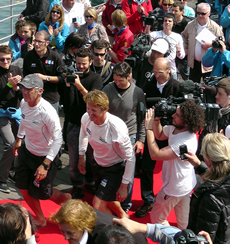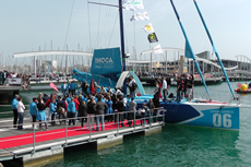 After ghosting across the line in 3-4 knots of breeze, Dick (45) and Peyron (51), drove their blue hulled VPLP-Verdier designed IMOCA 60 into Barcelona harbour docking close the Placa de la Carbonara by the Port Authority building, where, despite it being Monday morning, they were met by a huge crowd of friends, relatives, sponsors, media and general spectators.