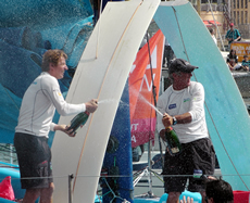 Despite now being one of the most experienced IMOCA 60s skippers, Dick is of course a new boy compared to his co-skipper. While Dick sailed his first Vendee Globe only in 2002, Peyron came home second in the first Vendee back in 1989, his solo sailing career dating back to a Mini Transat participation in 1979, the Figaro in 1980, his first Route du Rhum in 1982 and subsequently, the highlight of his career - back to back wins aboard his ORMA 60 trimaran Fujicolor in the OSTAR (1992 and 1996). While he finished second in the Vendee Globe and second again in The Race when he skippered the maxi-catamaran Innovation Explorer, this is the first time Peyron had won a round the world race.