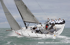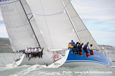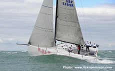 "Ten days out of the box and straight into a very breezy race was bit of a baptism of fire!" commented Goring: "A 120 mile beat to Eddystone and then a screaming run back in 30 knots of wind was a great test for this brand new design. We got a good start in the middle of the Squadron Line and we were chuffed to be the first of the big boats out of the Solent. The run home was brilliant and we had some amazing surfs on the tidal over falls at each headland with long periods where the speed was over 20 knots. At times there was white water past the mast but we didn't broach once for the whole trip."