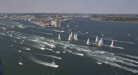 Tens of thousands of people turned out in Ocean Village Marina to wave the teams farewell before the ten-strong fleet headed out into Southampton Water where crowds of spectators lined the banks to watch as they were joined by HMS Illustrious for a breath taking formation parade ahead of the race start from the historic Royal Yacht Squadron start line at Cowes. Thousands more well-wishers were waiting on shore on the Isle of Wight while pictures were beamed back to a packed race village.