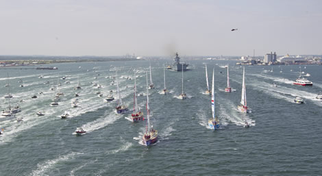 The Royal Navy’s helicopter carrier HMS Illustrious and a fleet of hundreds of spectator boats gave a spectacular send off to the amateur crews on board the ten yachts competing in the Clipper 11-12 Round the World Yacht Race.