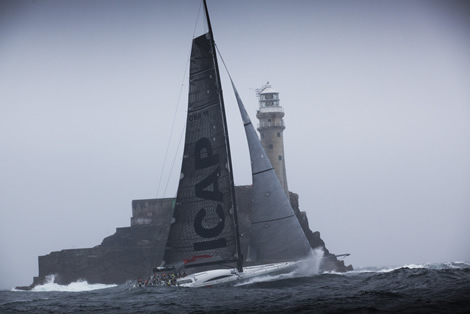 The three Volvo Open 70s subsequently sped past ICAP Leopard in the 20-30 knot winds heading across to Bishop Rock.
