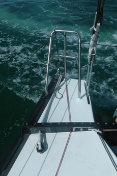 In terms of fore and aft trim, Stamm says that the boat when static is slightly bow out and therefore, when sailing upwind, requires weight be moved forward to get the bow down, thereby maximising waterline length.