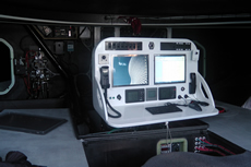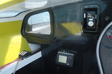 The cockpit layout is reasonably standard among IMOCA 60s. Lines run aft from the mast directly to the central pit area through a tunnel within the cabintop, while additional lines from the boards and headsail sheet tracks run aft through the sides of the cabintop. The winch package is from Harken. In the pit there is a single winch, while each side there is just one primary (a 990) and one runner winch, with a coffee grinder mid-cockpit driving the winches. The primary and runner winches on the port side wind in anti-clockwise, and Stamm admits that this has been taking him some time to get used to.