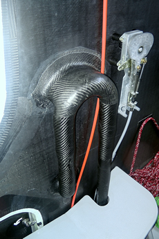 While some IMOCA 60s have in the past been built partly with a foam core or even monolithic to prevent delamination in slamming areas, techniques for building in carbon/Nomex have come on so Cheminees Poujoulat is carbon/Nomex throughout (this is also the case with VO70s).