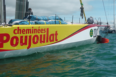 The hull of Cheminees Poujoulat has a chine extending all the way to the bow, like the three new Juan K-designed VO70s. But compared to Pindar her beam is a much more modest 5.8m; around 100mm more than the new VPLP-Verdier IMOCA 60s. Under the new IMOCA class rules, mast height is limited to 29m off the water, compared to 31.65m for the grandfathered Pindar/Hugo Boss, however Stamm's new boat can still fly 300sqm upwind and 600sqm downwind. Her weight remains undisclosed but is presumably much less than the deliberately heavy Pindar/Hugo Boss.
