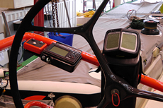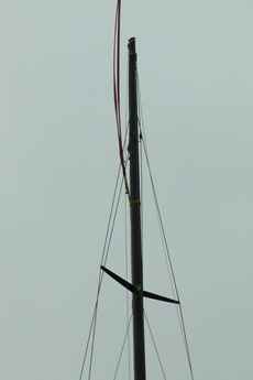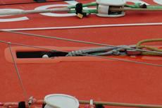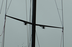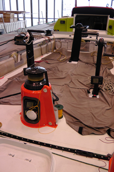 Groupama’s two masts have been built next door to their base by Lorimar. According to Foxall the main reason for losing a set of spreaders was to reduce windage. The standing rigging is from Carbolink, in carbon fibre with continuous Vs and traditional Ds. The carbon fibres are fused together by electric current once the rigging is fitted: “It is an interesting process - they semi-cook it at the factory and then they coil it up and they come and plug a battery in to it on site.”