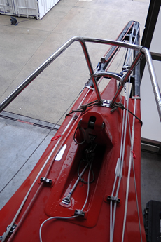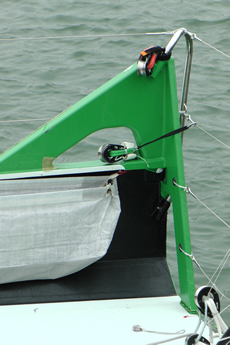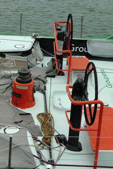 Like the other boats, Groupama 4 has towers on the aft corners of her cockpit for the spinnaker sheets. However they haven’t gone for the option of using these for their runners. “How far you come off the centre line affects the set up of the rig a lot, especially the top mast section."