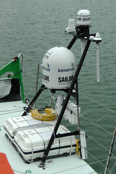 Whereas most VO70s have the nav station under the cockpit forward and the media station aft on Groupama it is the other way around and given the downward slope of the cockpit aft, this doesn’t leave much headroom for the navigator.