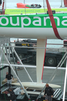 Thus alongside French crew such as Thomas Coville, Solitaire winner Charles Caudrelier, and ex-Belgacom ORMA 60 skipper Jean-Luc Nelias are ex-Green Dragon Australian Phil Harmer, two ex-Ericsson 3 Swedes in Martin Krite and Martin Strömberg and even a token Kiwi in the form of bowman Brad Marsh. On the build Killian Bushe, who built the ABN AMRO and Ericsson VO70s was a consultant to Groupama as Pierre Tissier led the build at Multiplast in Vannes on behalf of the team. Similarly they have gone to North France for their sails rather than Incidences who supplied the sails for their trimarans.