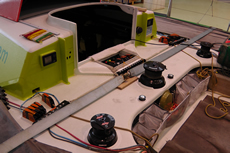 Down below on Groupama 4 the mast is stepped on a elevated platform rather than on the hull, for reasons we’ll address in a future article. The name of the game in terms of the engineering is to minimise all internal structure by making it multi-function, tying in the loads from the mast, chainplates, keel and daggerboards. We weren’t allow to photograph down below but in the main area of load action there are twin bulkheads with large apertures in them.
