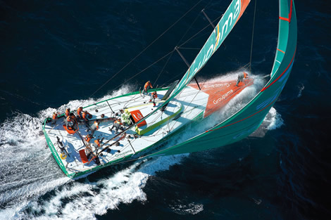 Groupama represents a welcome return to the fully crewed round the world race of France, one of the world’s strongest nations in offshore racing, the last effort having been the maxi-ketch La Poste in the 1993-4 race. Their participation comes following an initiative from Volvo Ocean Race CEO Knut Frostad during the last race to woe a French team to the event. However it is also timely for Groupama skipper Franck Cammas. Having won the Solitaire du Figaro, Cammas became unbeatable in the latter years of the ORMA 60 class with Groupama 2. Last year he successfully set a new time for the Jules Verne Trophy, non-stop around the world aboard his 105ft maxi-trimaran Groupama 3 and then in the same boat, albeit with a cut-down rig, he won the Route du Rhum, singlehanded, in an effort comparable to Eric Tabarly’s win in the 1976 OSTAR aboard his Whitbread maxi Pen Duick VI. With this track record it is perhaps understandable that Cammas wished to raise his game further and enter offshore racing’s most competitive fully crewed event.