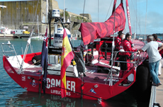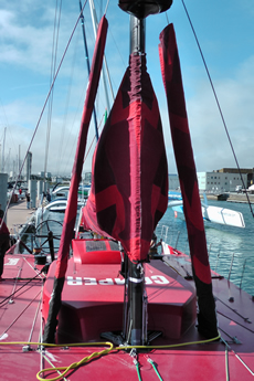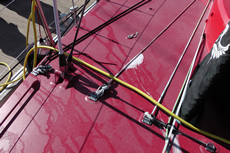 The mast is of course from Southern Spars, as is Telefonica’s, but on Camper the four sets of spreaders are in-line rather than swept back. All the standing rigging is Southern’s EC6, bundles of carbon fibre 2mm protruded rods, but with a braided Spectra cover over it. Attached to the front of the mast is the radome which navigator Will Oxley tells us houses a standard radar antenna rather than a more modern ‘broadband’ one, which allegedly offer massive performance improvements, plus lower power consumption.