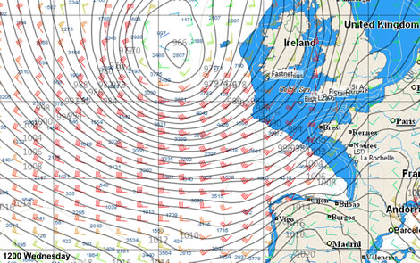 Gamesa skipper Mike Golding was equally pessimistic about the outlook. “It is early days, but Tuesday is looking very bad and it is a question of what your strategy is going to be. I don’t think you can get out of it. One option is to go north and try to get around the top of it. Some boats might get there quick enough to do that - that is the safest option, but if it goes wrong and you don’t make it, you are going to get pasted even worse, plus you are going to be on the Irish coast.”